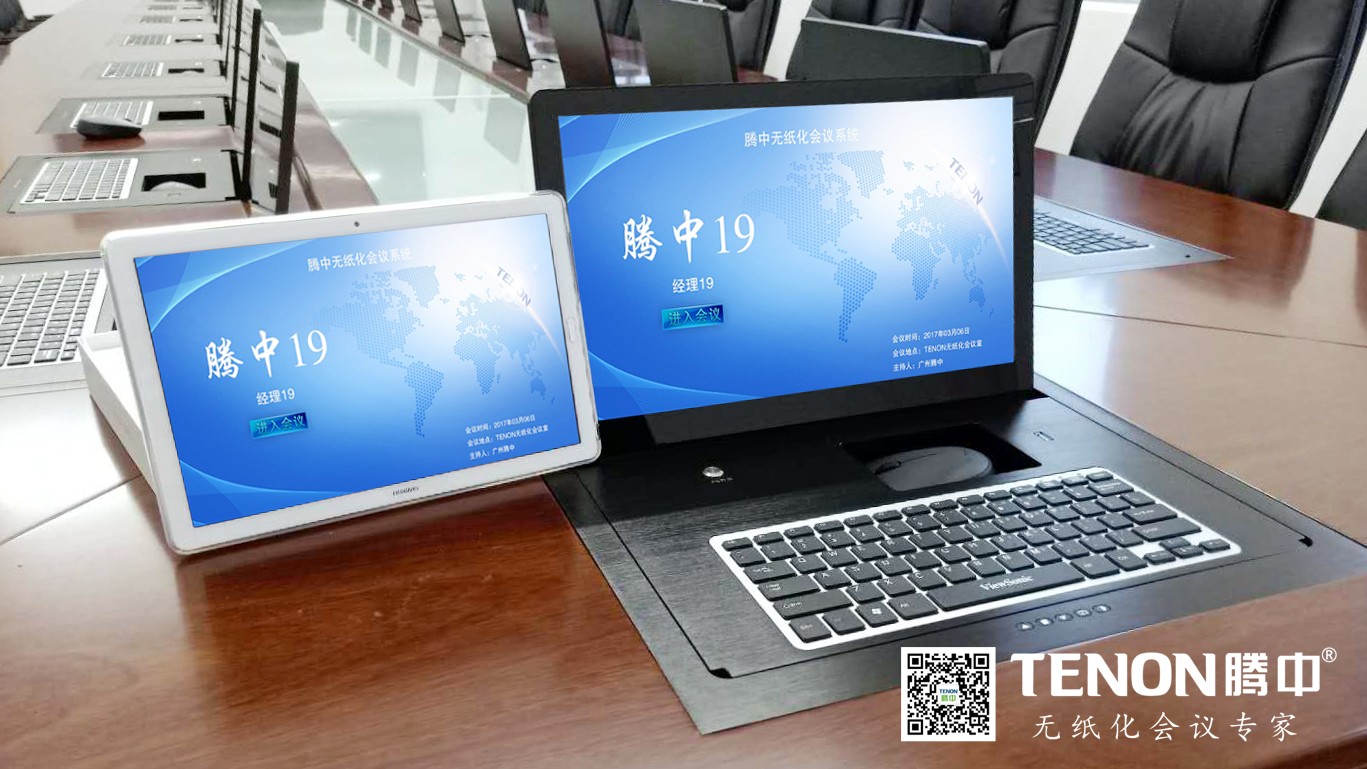 TENON無紙化會議系統概念的提出和運用實施使得會議從傳統的紙質為信息記錄和拖沓的演講轉化成以顯示器為載體的數字化、簡約化、移動化的交互式多媒體會議。無紙化會議系統作為智能會議系統的一個重要組成部分,是運行在PC、平板電腦上的新一代會議系統,本系統采用全新的會議模式,將傳統會議過程中的各個環節虛擬化、主體信息和承載介質數字化,將多種信息化技術融入會議的各環節、貫穿會議全過程,將頻繁召開的會議全部搬上windows.安卓平臺,會議使用者在更短時間內清晰了解、交流更多的會議內容,完成多于以往的會議任務。