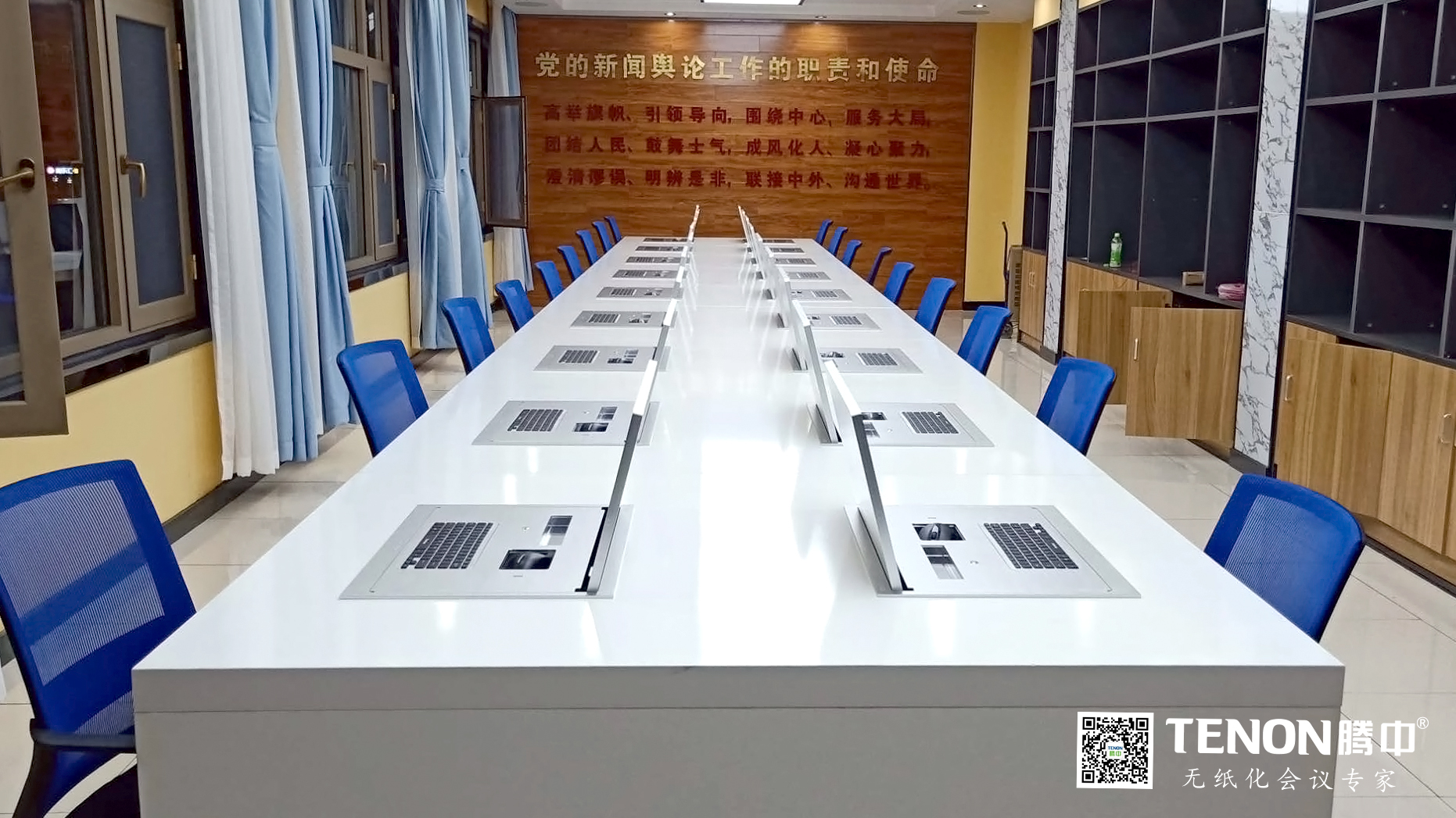 TENON無紙化會議系統概念的提出和運用實施使得會議從傳統的紙質為信息記錄和拖沓的演講轉化成以顯示器為載體的數字化、簡約化、移動化的交互式多媒體會議。無紙化會議系統作為智能會議系統的一個重要組成部分,是運行在PC、平板電腦上的新一代會議系統,本系統采用全新的會議模式,將傳統會議過程中的各個環節虛擬化、主體信息和承載介質數字化,將多種信息化技術融入會議的各環節、貫穿會議全過程,將頻繁召開的會議全部搬上windows.安卓平臺,會議使用者在更短時間內清晰了解、交流更多的會議內容,完成多于以往的會議任務。