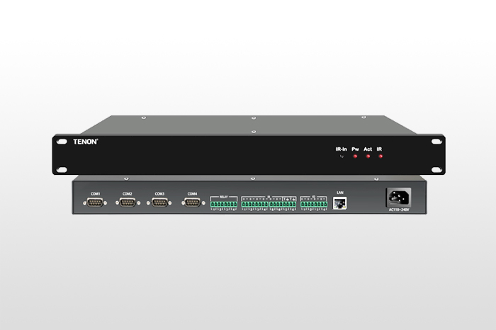 主機內置4個DB9公頭RS-232串口,4個IO口,4個弱繼電器口,6個紅外終端模塊,2個提供DC24V/1A的NET控制串口,1個USB口,一個以太網絡接口