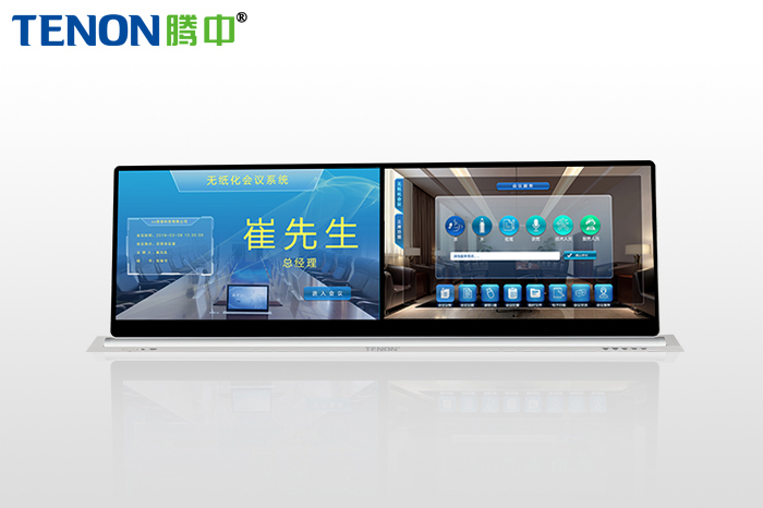 液晶升降器,液晶屏升降器,無紙化顯示屏,超薄圓軸式IPS電容觸控屏升降隱藏系統(tǒng),屏體外殼采用高端鋁合金一次成型工藝,背板無螺絲孔位,支持全屏觸控。在Windows/Android操作系統(tǒng)下嵌入騰中TENON無紙化會議系統(tǒng)軟件,可滑屏、拖動、縮放、修改、查看會議資料等。采用Multi-Touch多點觸摸技術,任何一點可承受大于50萬次的觸摸。 雙15.6寸液晶升降器,超薄單面升降一體機,搭載超薄雙15.6寸觸摸液晶2K屏拼接屏